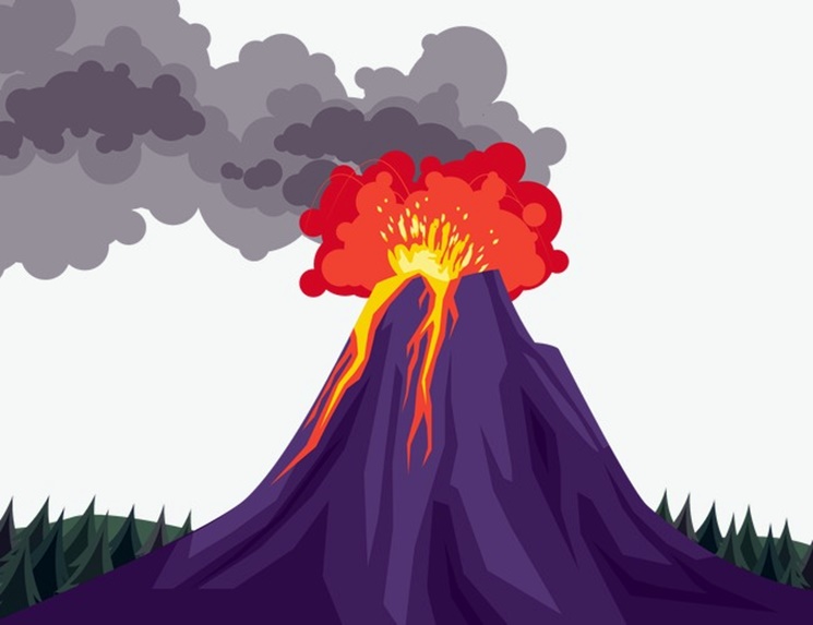 con las imágenes de un volcán que había entrado en