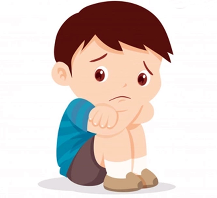 lugar, ainda de cabeça baixa e olhar triste.