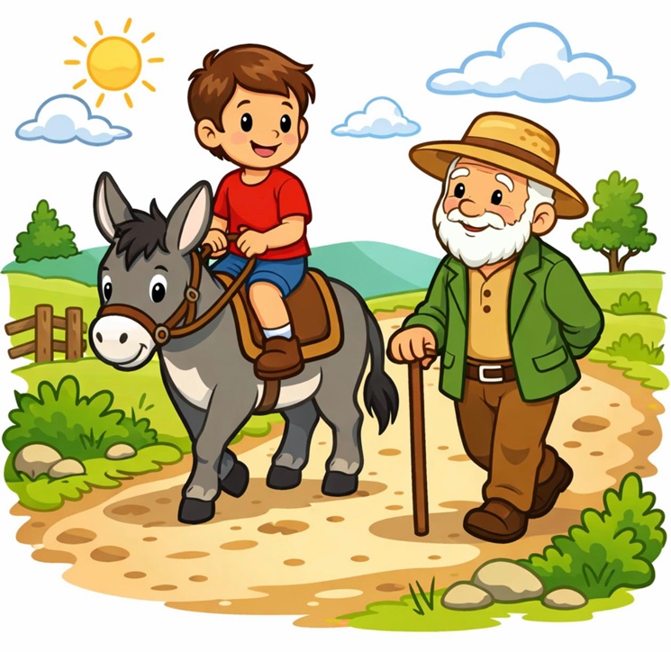 Seguiam por um caminho um menino, um velho e um burro. O